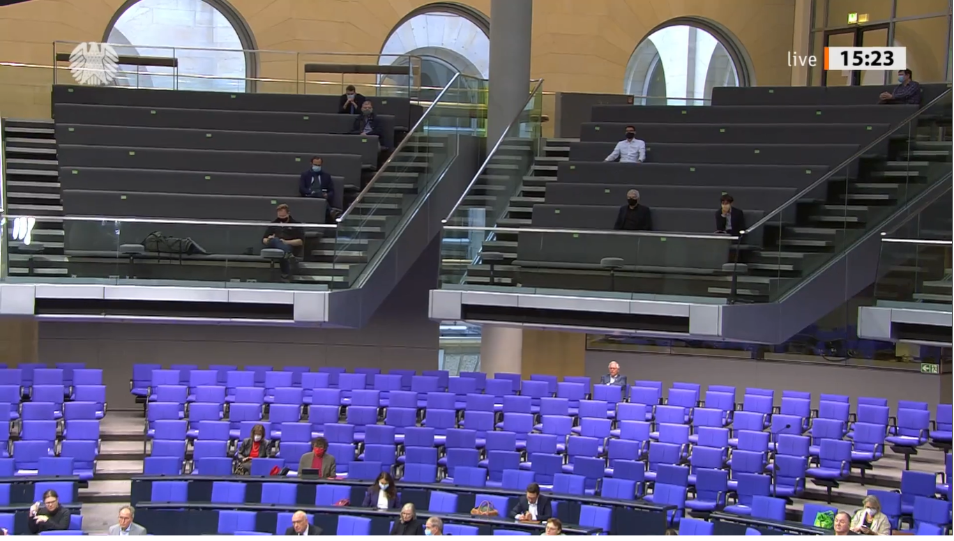 Foto: Roland allein im Hohen Haus. Roland Jahn bei der Debatte zur von ihm mit betriebenen Abwicklung seiner Behörde im Bundestag 30.10.2020.