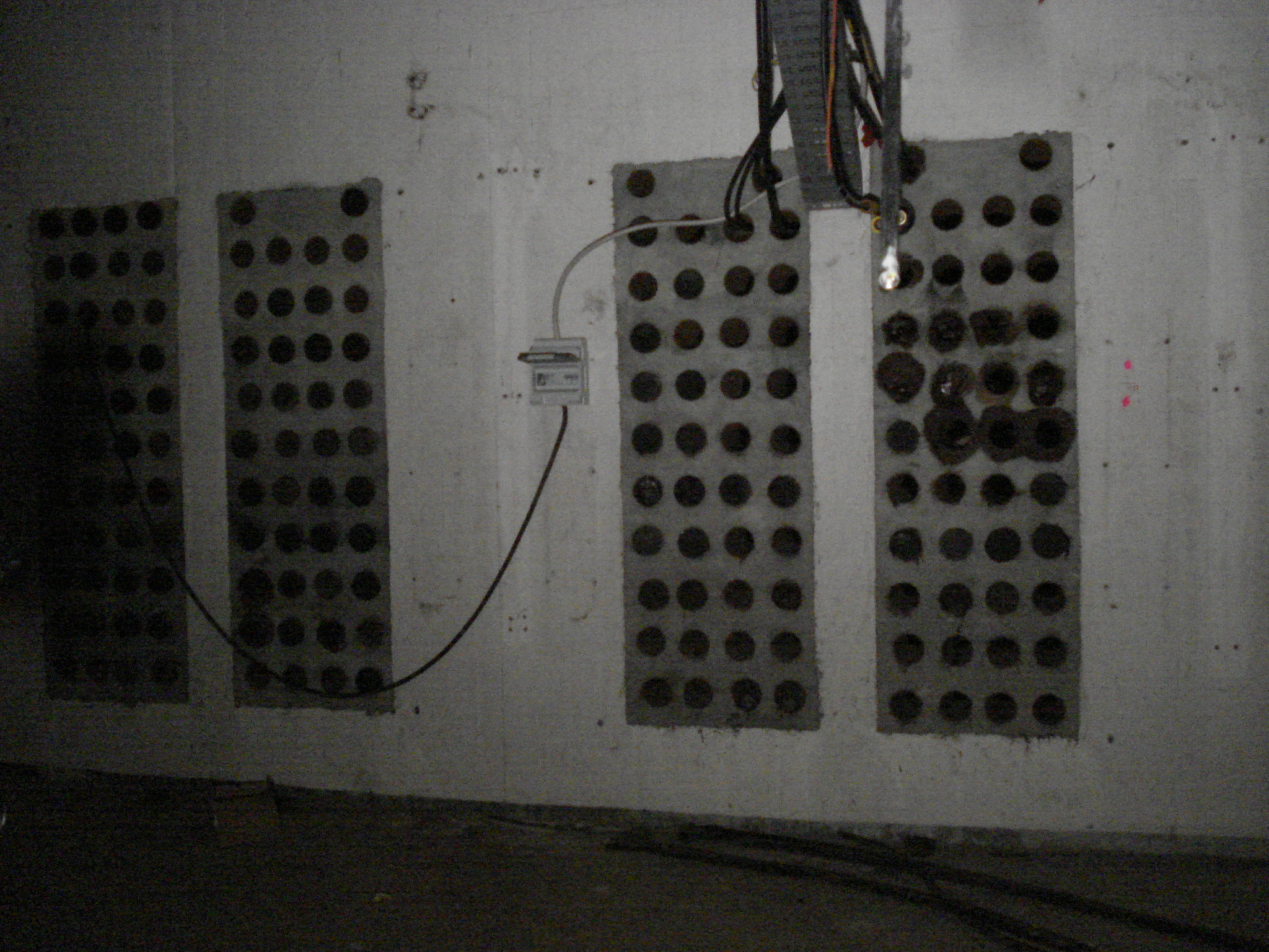 Foto 2: Im Keller führten dutzende von armstarken Datenleitungen in das Gebäude. Noch heute sind die Löcher in der Wand zu sehen.
